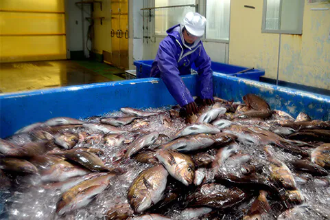 真鯛は活魚が韓国で人気です。冷蔵ラウンド(丸のまま)、冷蔵フィレ(3枚おろし)なども輸出しています。鰤は活魚、生鮮と冷凍のフィレなど。冷凍フィレはアメリカで人気です。