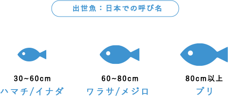 日本では成長に応じてぶりの呼び名を変えます。成長するにつれて格が上がるという意味を込めて「出世魚」と呼び、贈り物にしたり、正月などの祝いの食卓にも並べたりします。ハマチやイナダ、ワラサやメジロ、80cm以上をブリと呼ぶ場合が多いです。このほかにも呼び名があり、これはぶりが各地方で親しまれてきたということを表しているといえるでしょう。